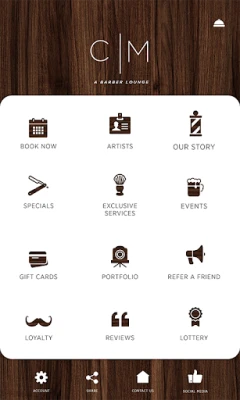 1. Make Appointments. Make an appointment directly through your phone. Our staff will get back to you quickly to confirm availability. 2. Check your appointments. Once your requested appointment is confirmed, you’ll receive notification within the app. 3. Specials. Keep up with seasonal offerings and specials. 4. General information. 5. Gallery 6. Menu many more