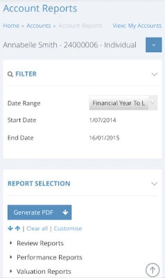 • Keep track of client account details on the go, including the ability to download reports and graphs.