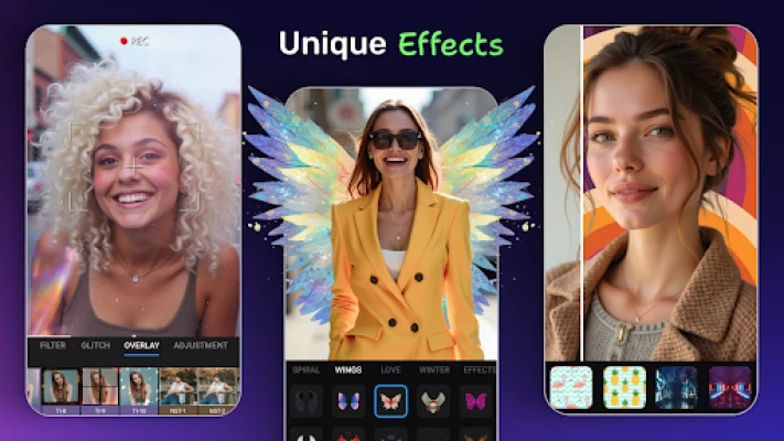 📸 Add retro, sparkle, and glitch themes with explore filters and effects: photo editing app;