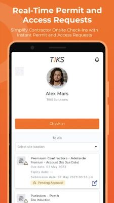 With the TIKS Visitor, Visitors undertaking service works at TIKS premises can complete a visitor induction, register and check-in to TIKS premises. Features: - View and complete the visitor induction - Generate an electronic visitor pass - Check-in and check-out with the built in QR code reader